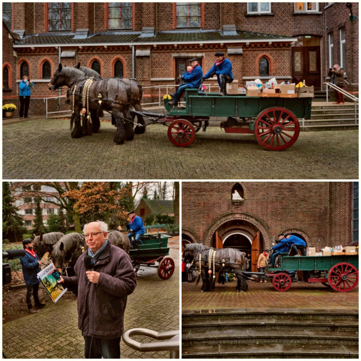 Het was niet gepland, maar evengoed heel toepasselijk: op zondag Gaudete, de derde zondag van de advent, trok de paterskèr weer door Panningen. Daarmee werd een traditie herdacht die in 1921 begon met de preek van overste Hubert Meuffels en die door de jonge boeren tot in de jaren 70 van de vorige eeuw werd voortgezet: er werd voedsel opgehaald voor mensen die hulp nodig hebben. Destijds waren dat de bewoners van het missiehuis. Nu zijn het medeburgers die een beroep moeten doen op de voedselbank. Toen werd er gul gegeven en nu ook.